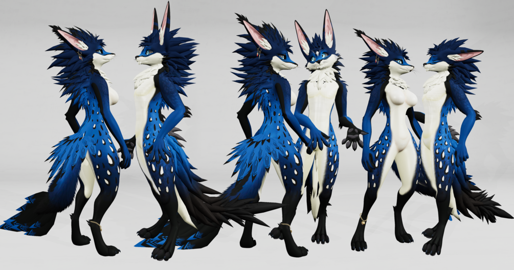You will only Receive texture for the Body, Eyes and feathers! Come with Male and Female Body shading for the Rex and Magpie. As well as Mask texture for the Feathers marking, inner and outer spots to allow Audiolink, matcap, etc!